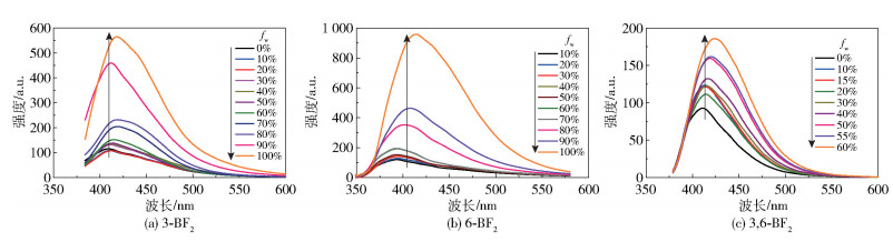 表 2 3种二氟硼化合物在不同处理方式下的荧光发射波长Table 2 Fluorescence emission wavelengths of three difluoroboron compounds under different treatment methods |