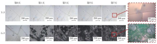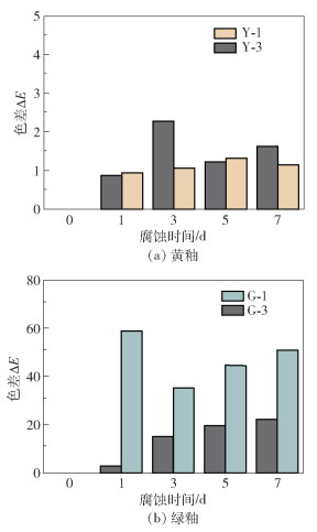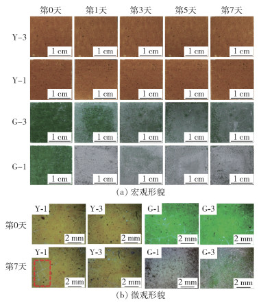 2.2 黄釉和绿釉琉璃瓦在酸性溶液中的腐蚀行为差异