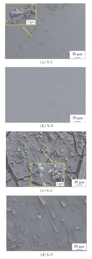 表 2 试样G-3和G-1釉面在不同腐蚀区域的元素含量Table 2 Element content on the glaze surface of the samples G-3 and G-1 in different corrosion areas |