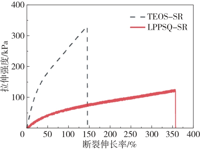 表 2 梯形聚苯基倍半硅氧烷和正硅酸乙酯作为交联剂硅橡胶力学性能Table 2 Effect of ladder-like polyphenylsesquioxane and ethyl orthosilicate as crosslinking agents on the mechanical properties of silicone rubber |