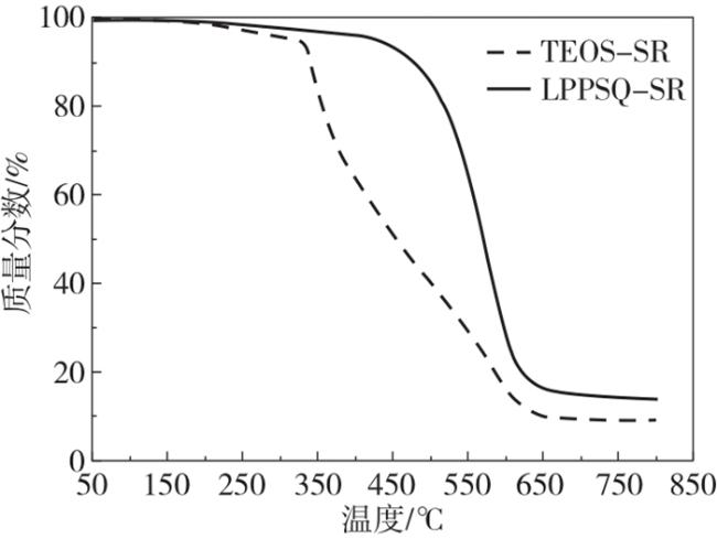2.4 梯形聚苯基倍半硅氧烷改性RTV硅橡胶的热稳定性能分析
