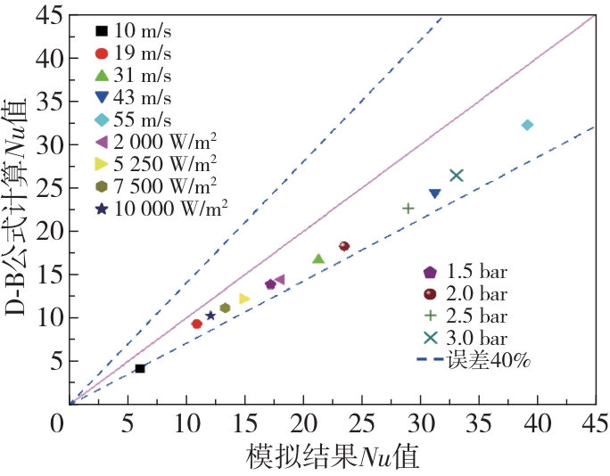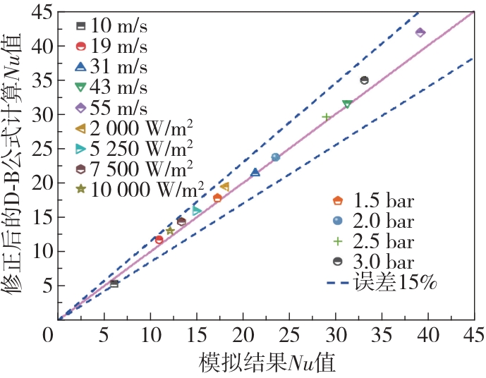 | 加热面热流/ (W·m-2) | 2 000 ~ 13 333 |