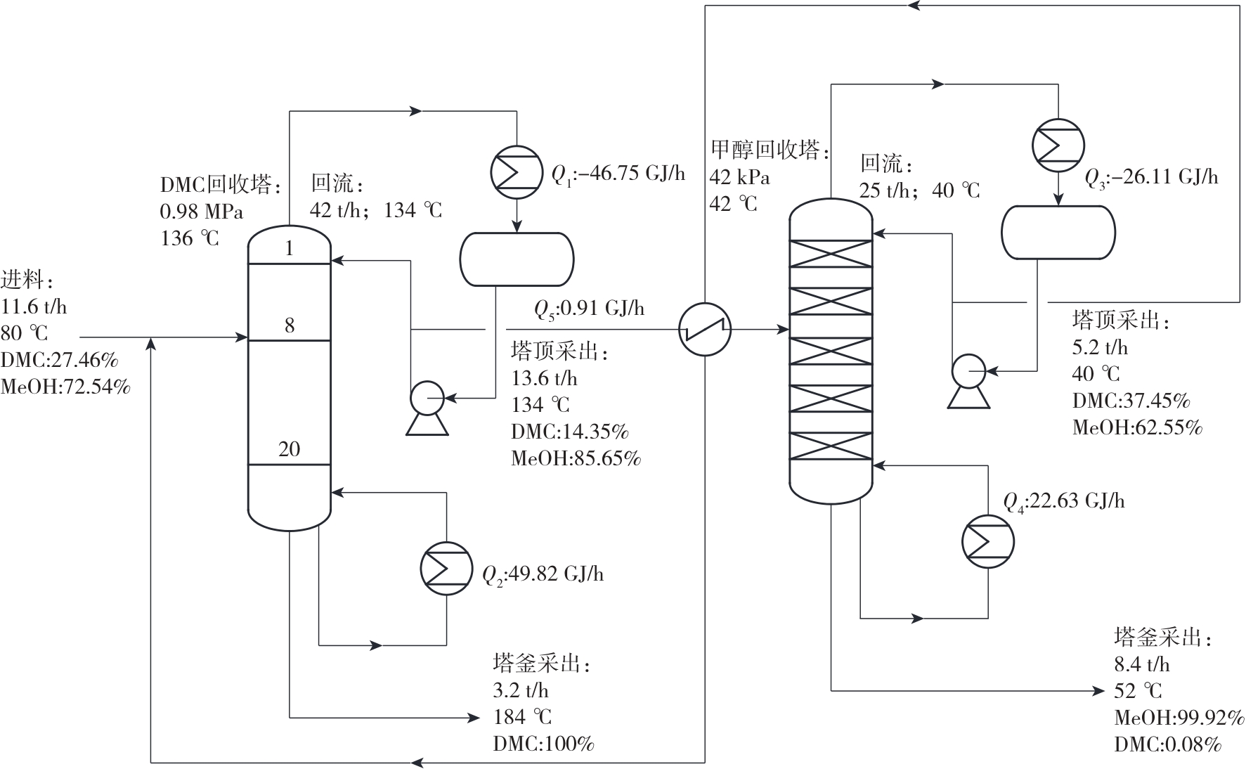 | DMC塔冷负荷/(GJ·h-1) | 46.75 | 22.19 |