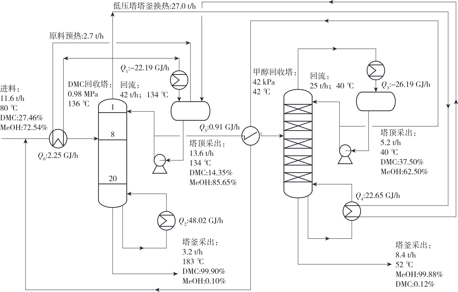 | DMC塔热负荷/(GJ·h-1) | 49.82 | 48.02 |