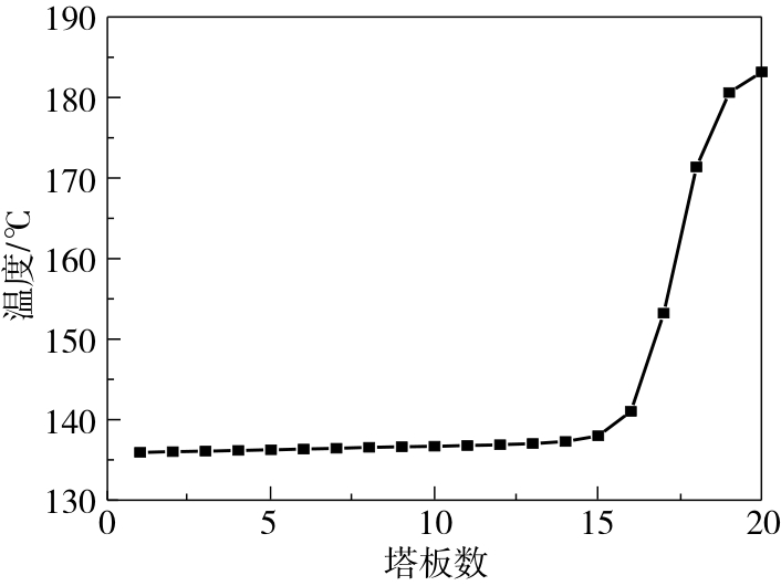 | 中间再沸器负荷/(GJ·h-1) | 17.19 | 20.80 | 21.80 |