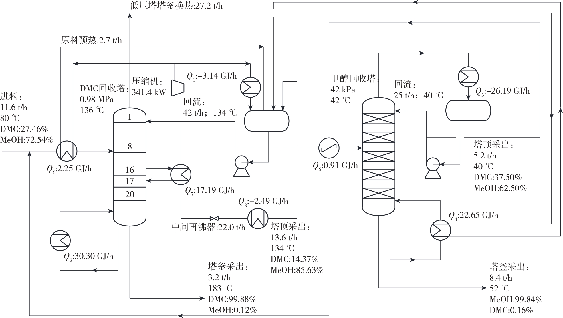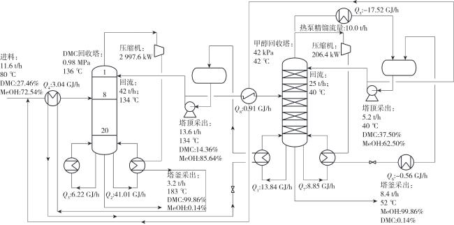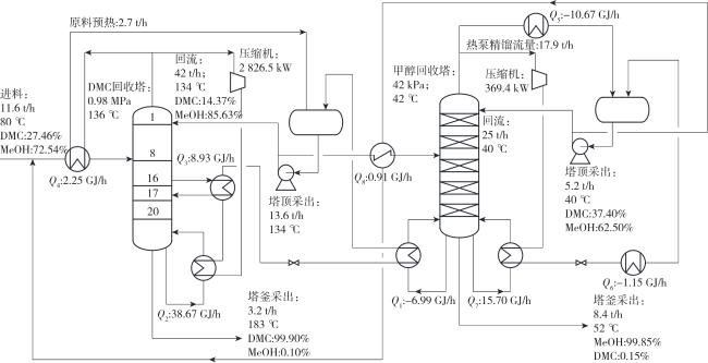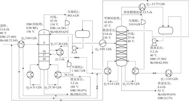 | DMC塔热负荷/(GJ·h-1) | 30.30 | 26.69 | 25.33 |
