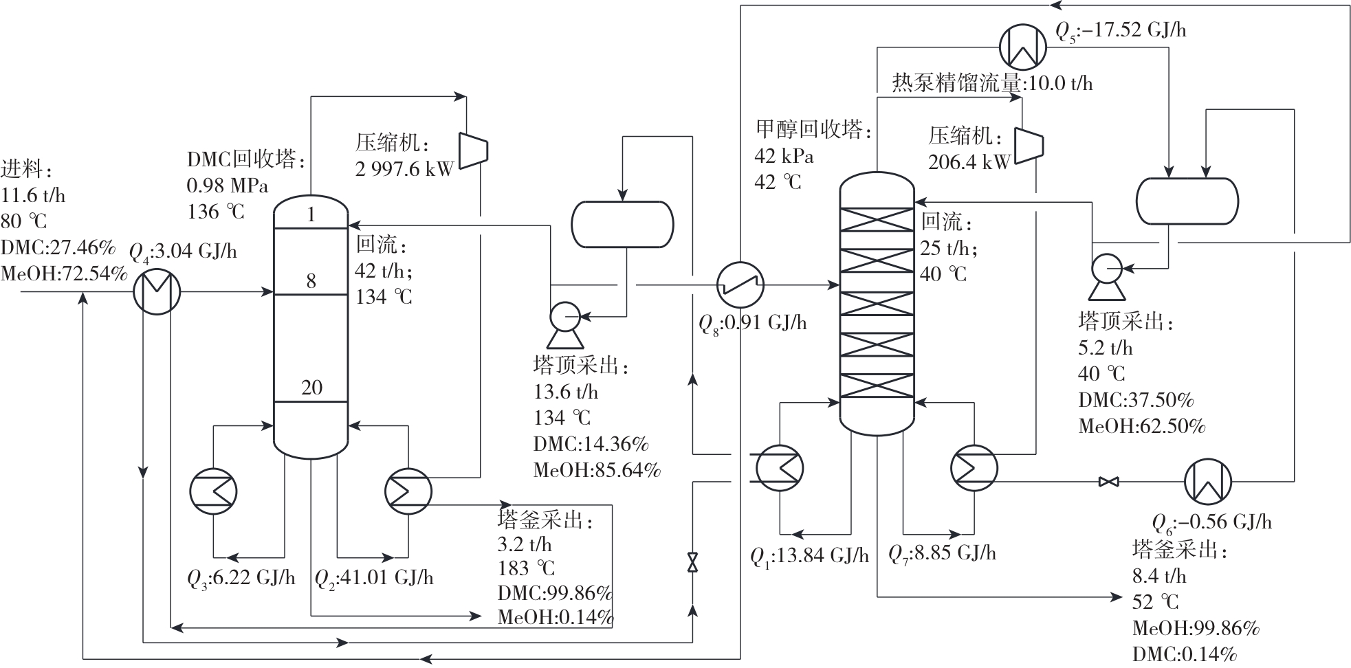| DMC塔热负荷/(GJ·h-1) | 6.22 | 0.00 | 4.31 |