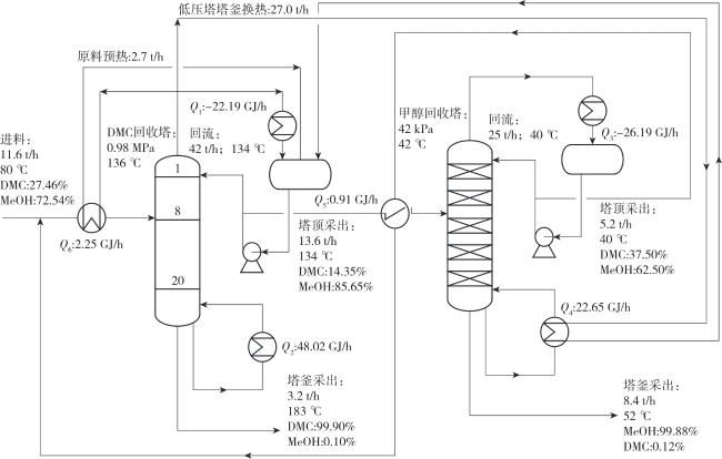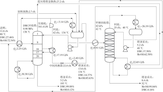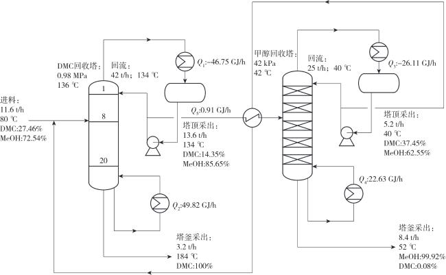 1 变压精馏分离DMC-MeOH共沸物的工艺流程