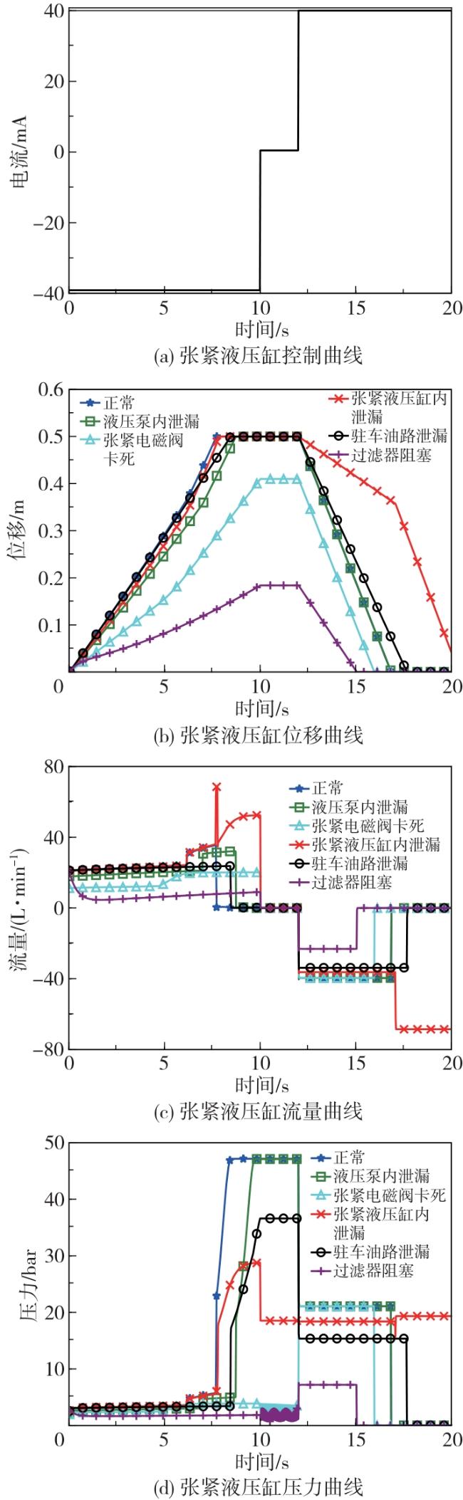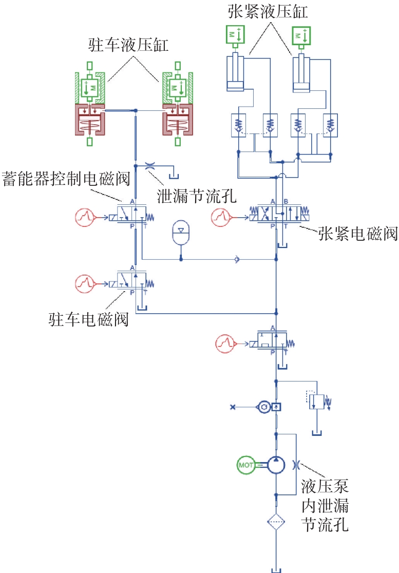 表2 驻车和张紧液压系统主要仿真参数Table 2 Main simulation parameters of parking and tensioning hydraulic system |