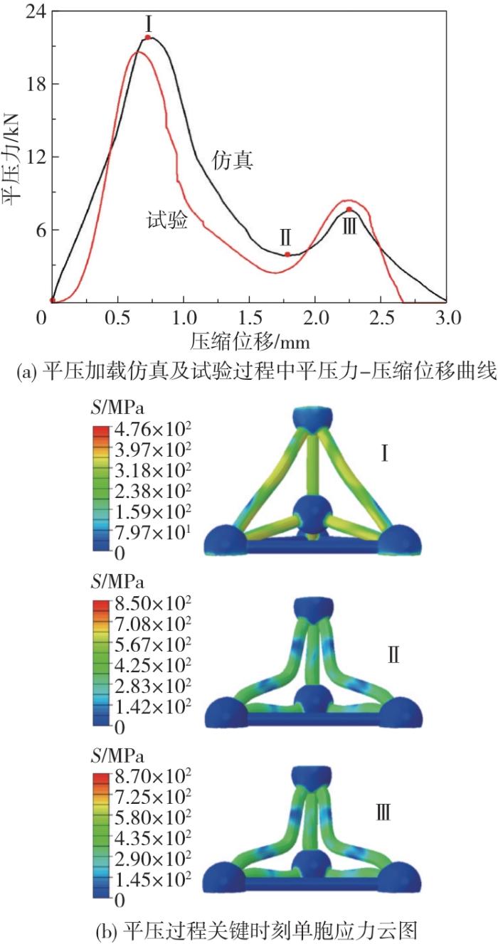 [7]通过改变点阵单元胞几何形状,尤其是降低单元胞的长宽比,即设计成更高更窄的单元胞,显著提高了结构在压缩载荷下的初始刚度、屈服强度和能量吸收效能。Mazur等