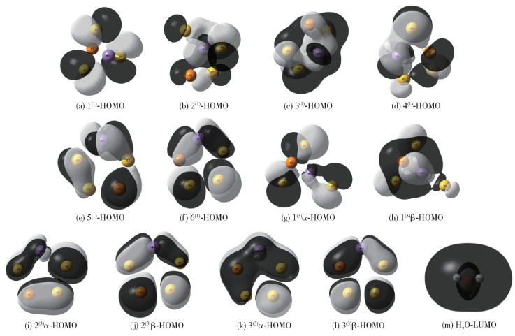 表 2 团簇MnPS3的HOMO轨道与水分子的LUMO轨道之间的能级差Table 2 Energy level difference between the HOMO orbital of the MnPS3 cluster and the LUMO orbital of the water molecule |