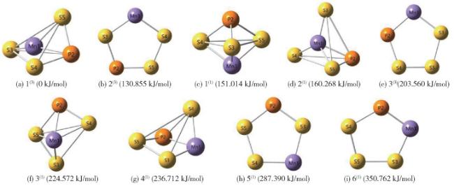 表 1 团簇MnPS3各优化构型及单个原子的能量参数Table 1 Energy parameters of the optimized configurations and single atoms of the MnPS3 cluster |
