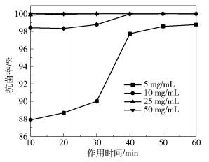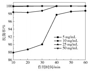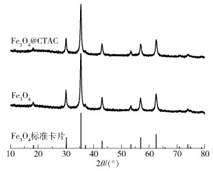 Fe3O4 particles with good dispersibility were synthesized by a solvothermal method. The surface of the Fe3O4 particles was first modified with oleic acid and cetyltrimethylammonium chloride (CTAC) was then coated via hydrophobic interactions to obtain Fe3O4@CTAC particles. The Fe3O4@CTAC particles were characterized by scanning electron microscopy (SEM), X-ray photoelectron spectroscopy (XPS), X-ray diffraction (XRD), Zeta potential measurements and vibrating sample magnetometry (VSM). The results show that the particle size of Fe3O4 has no obvious change after coating with CTAC, and the Fe3O4@CTAC particles retain good monodispersity. The Fe3O4@CTAC particles have superparamagnetism and good magnetic response properties. The Zeta potential of Fe3O4@CTAC particles is high, and the dispersion has good stability. The antibacterial properties and magnetic separation of Fe3O4@CTAC particles were tested. The results showed that when 50 mg/mL Fe3O4@CTAC particles were treated with E. coli (105 cfu/mL) for 10 min, the antibacterial rate could reach 100%. Fe3O4@CTAC particles also have good antibacterial effects on S. aureus and B. subtilis. The Fe3O4@CTAC particles and adsorbed bacteria can be separated using a magnetic field. The above results indicate that Fe3O4@CTAC is a fast, efficient antibacterial agent that can generate aseptic residues and thus has potential application value.