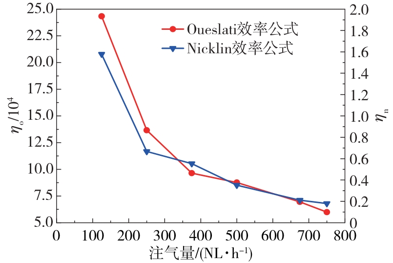 [10]采用欧拉两相流模型,对二维气力提升系统进行了数值模拟,研究表明同一温度下,随着注气量的增加,液体质量流量先快速升高后趋于平稳或略有降低。