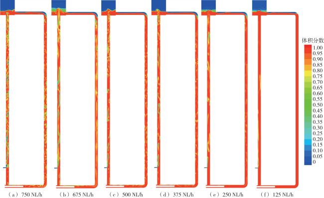 [9]采用大涡模拟(LES)和流体体积法(VOF)对上升管内的多相流进行数值模拟,捕捉到随注气量的增加两相流流型的转变。左娟莉等