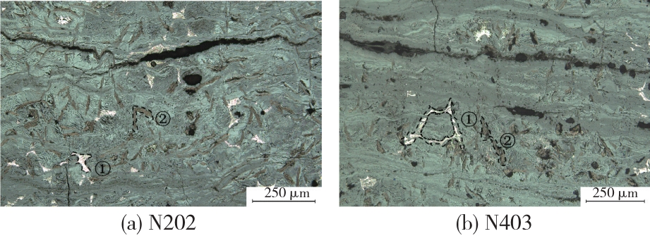 表 2 样品N202选区SEM-EDS元素组成Table 2 SEM-EDS elemental composition of different samples |