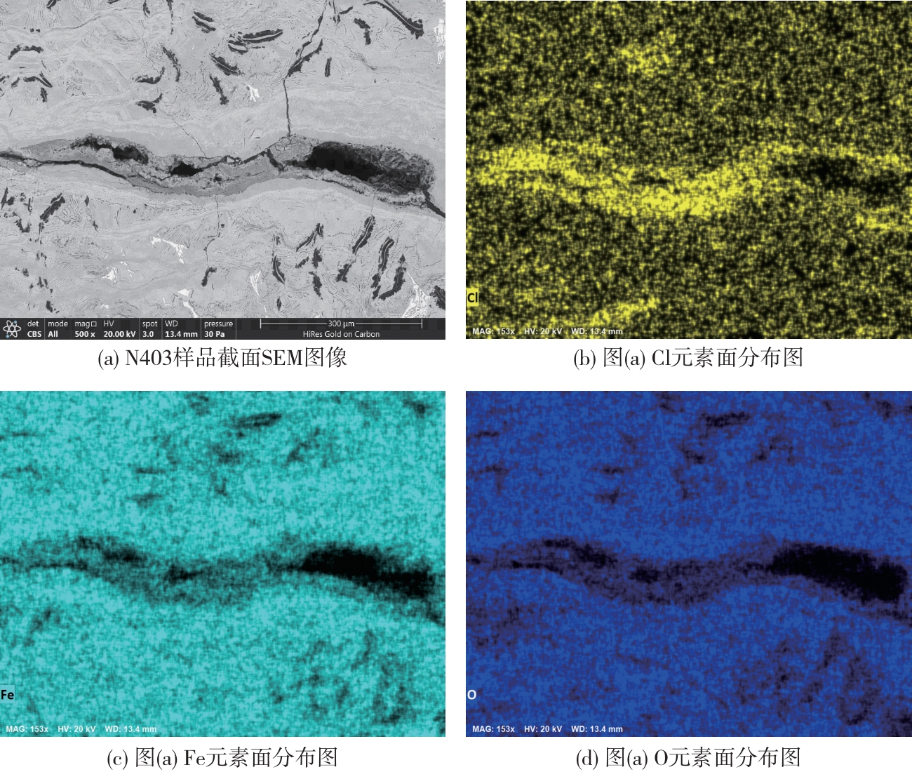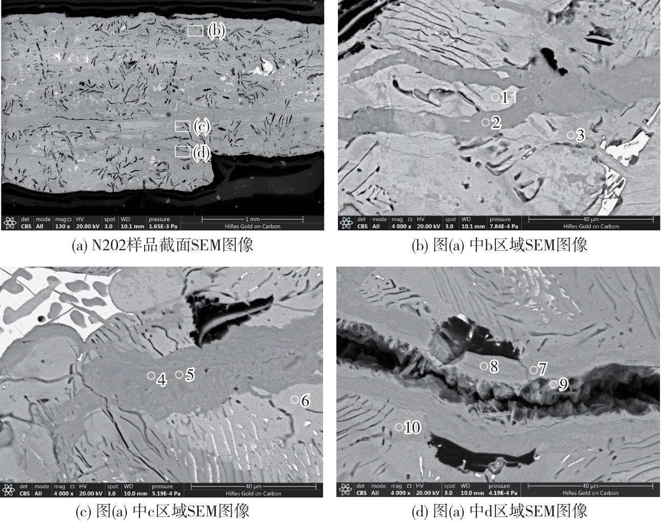 图 4 N202样品截面SEM图像及EDS分析点位Fig.4 Cross⁃sectional SEM image of sample N202 with EDS analysis points |